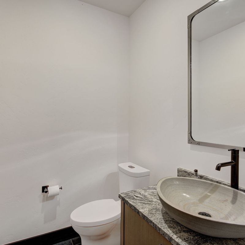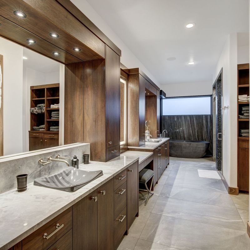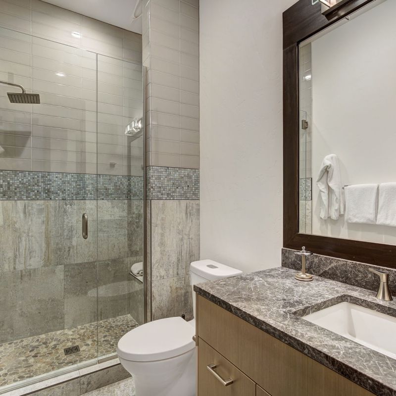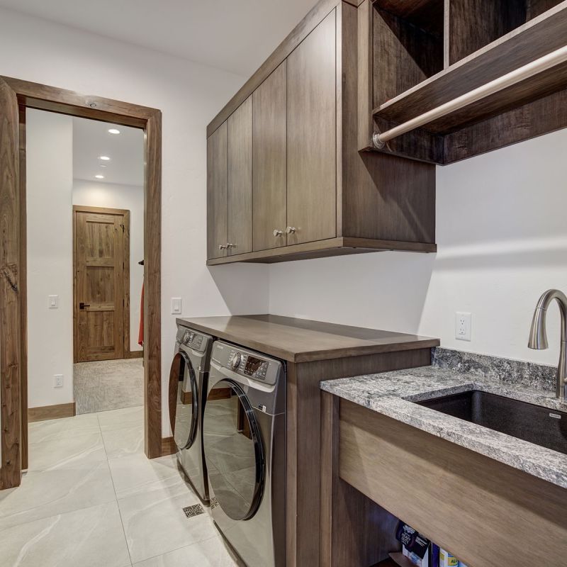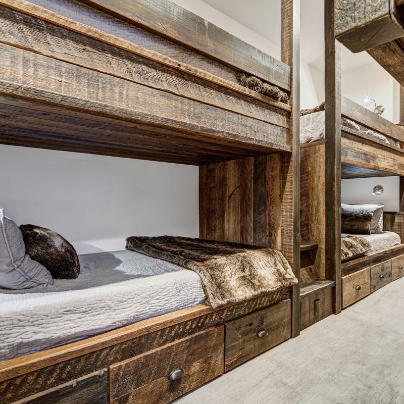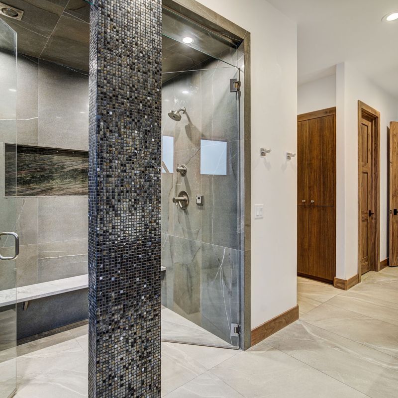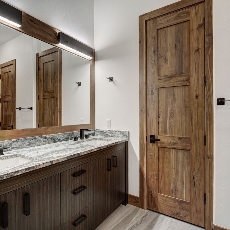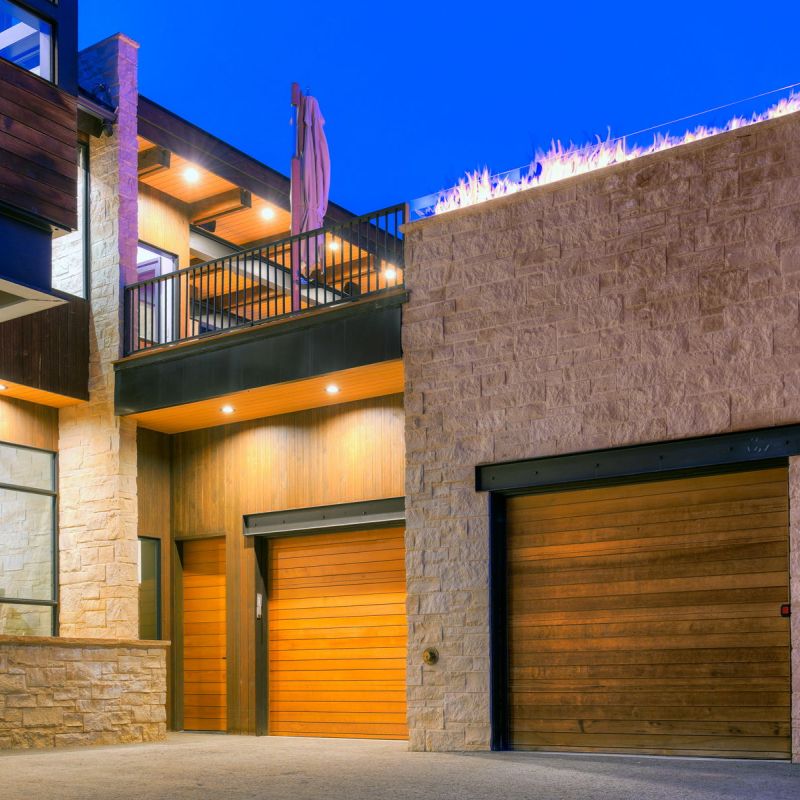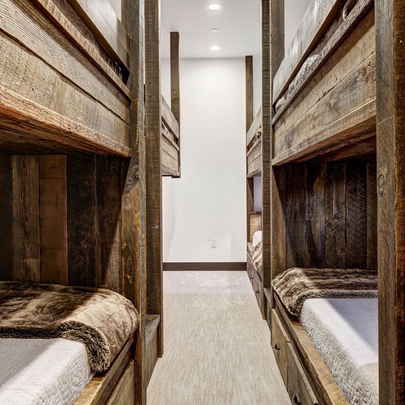 The home tells a story through its thoughtfully curated details. A custom dining room table extends outdoors, inviting alfresco dinners under a star-filled sky. The slate tunnel, an homage to the natural terrain, leads to a secluded space where the sound of the waterfall provides a soothing retreat. Additionally, a wall of aspens within the home evokes the sensation of walking through a forest, enriching the connection to the landscape.